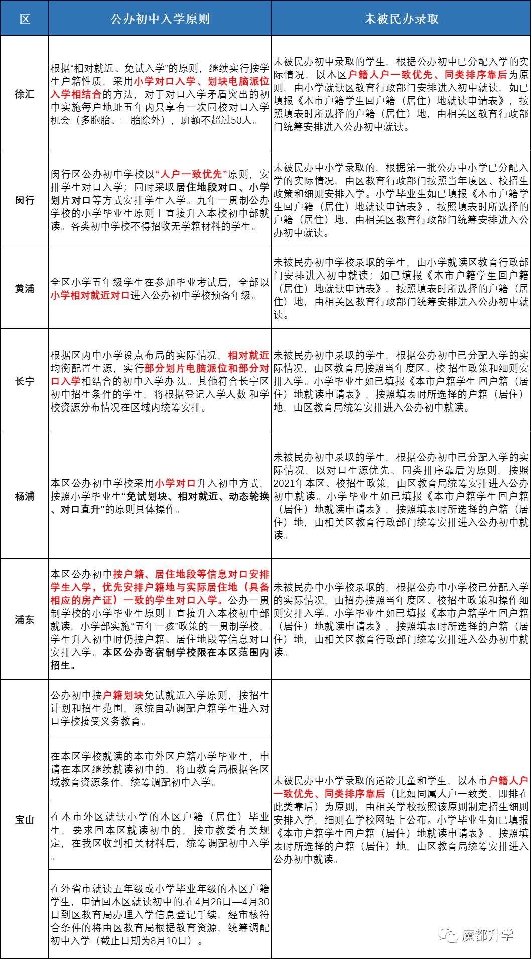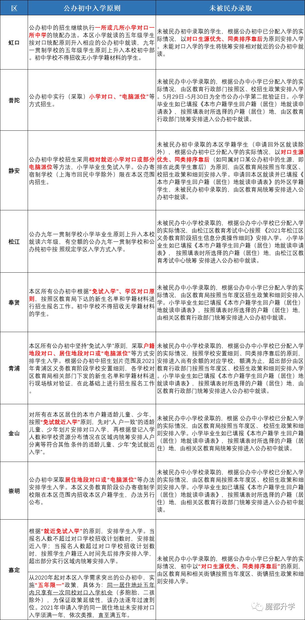 与2020年相比,各区对口原则基本没什么变化,只有普陀区的对口入学方式新增了“电脑派位”。附普陀区政策原文: