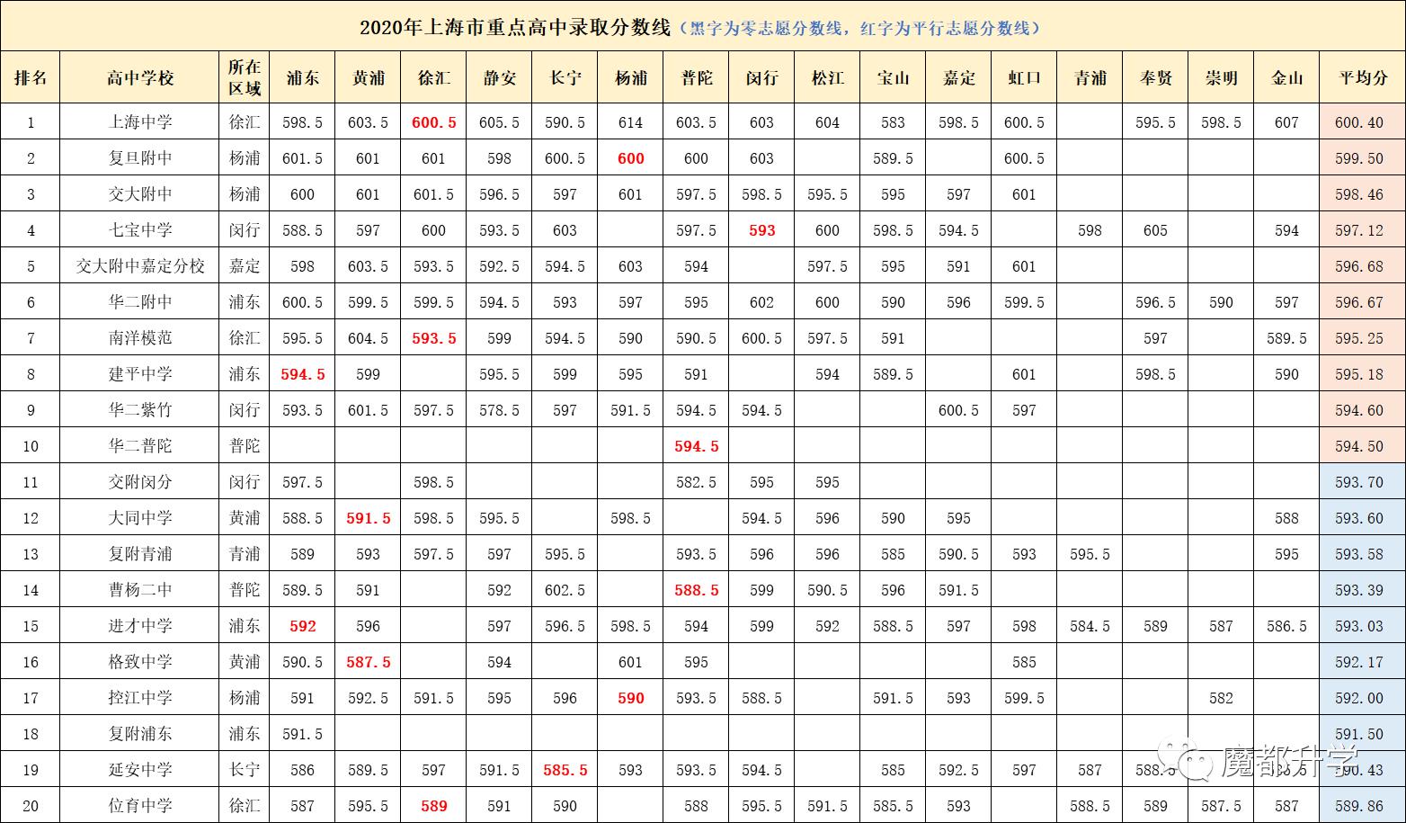 通过计算各高中在16区的平均录取分数线,由高到低排序,排出上海高中TOP40!