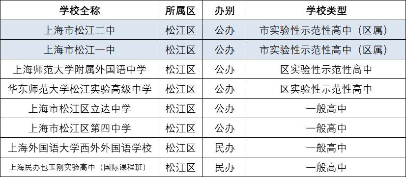 复兴高级中学(八大之一)、北郊高级中学、华师大一附中、上外附中、上外附中东校