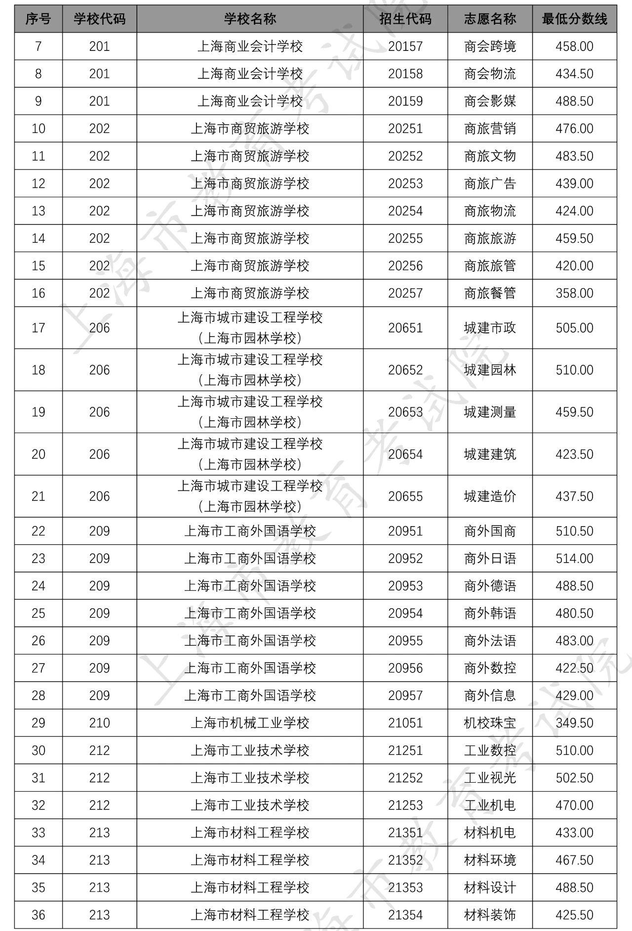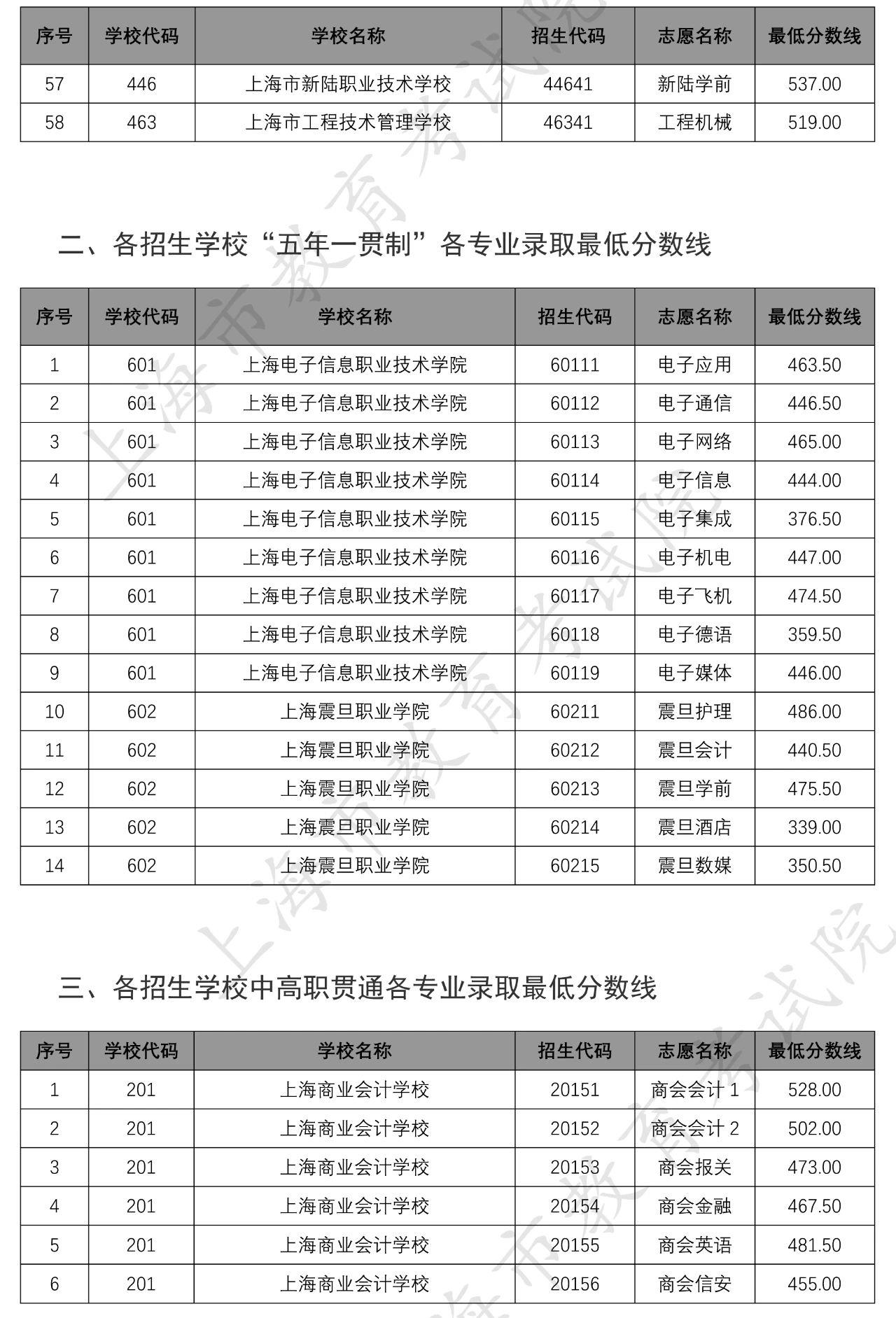 去年中本贯通、中高职贯通、随迁子女录取分数线 2021/4/9 11:05:20 上海中考网 人气: 标签:中考 2020年上海市中等职业学校提前批招生中本贯通、中高职贯通各专业录取最低分数线。2021届的家长可作为参考~