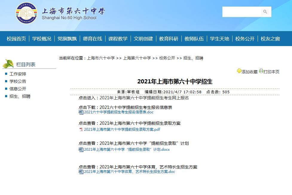 4月18日至5月13日,登录上海市延安中学校园网录入个人信息(请保存好个人密码),并下载《2021年上海市延安中学推荐生报名表》或《2021年上海市延安中学自荐生报名表》。