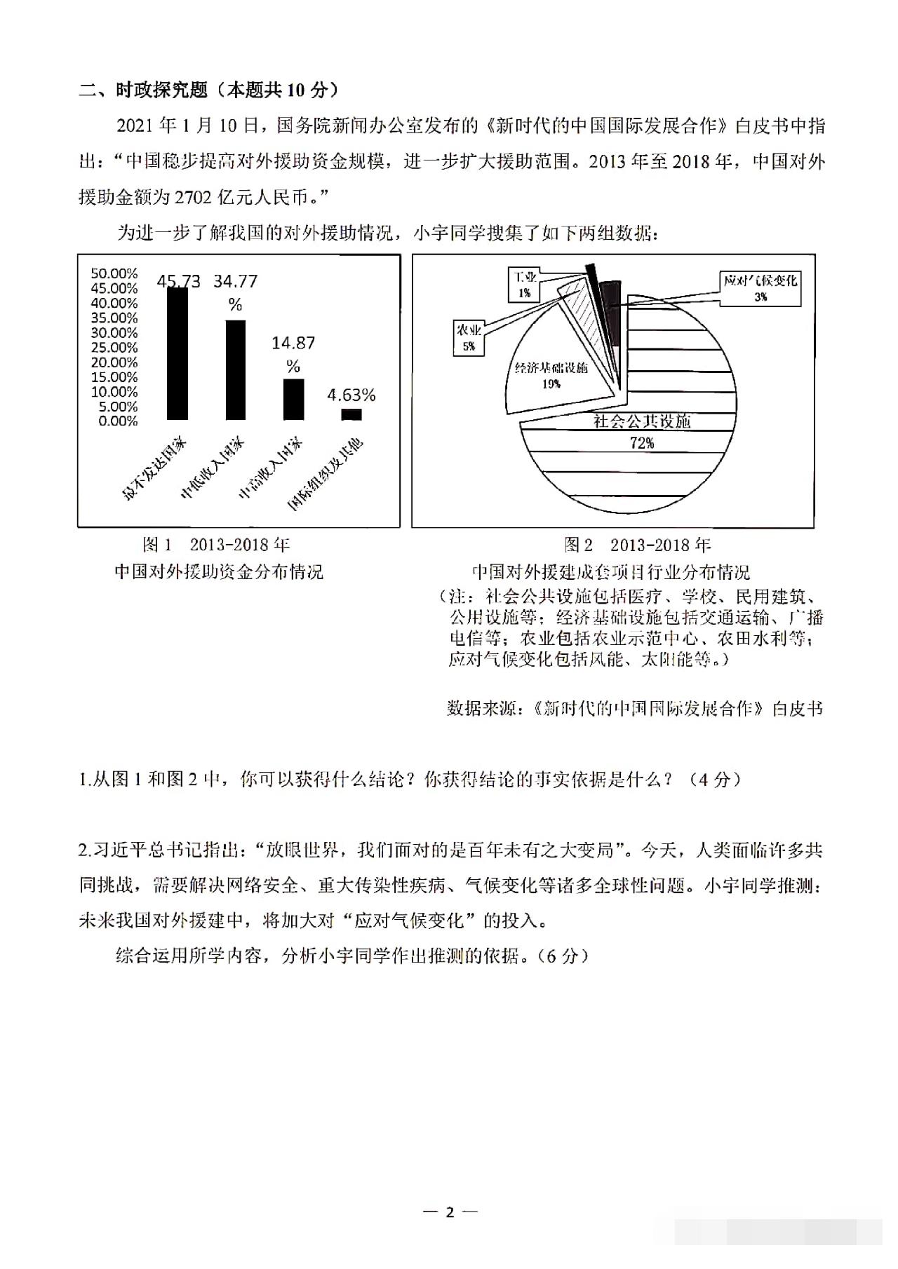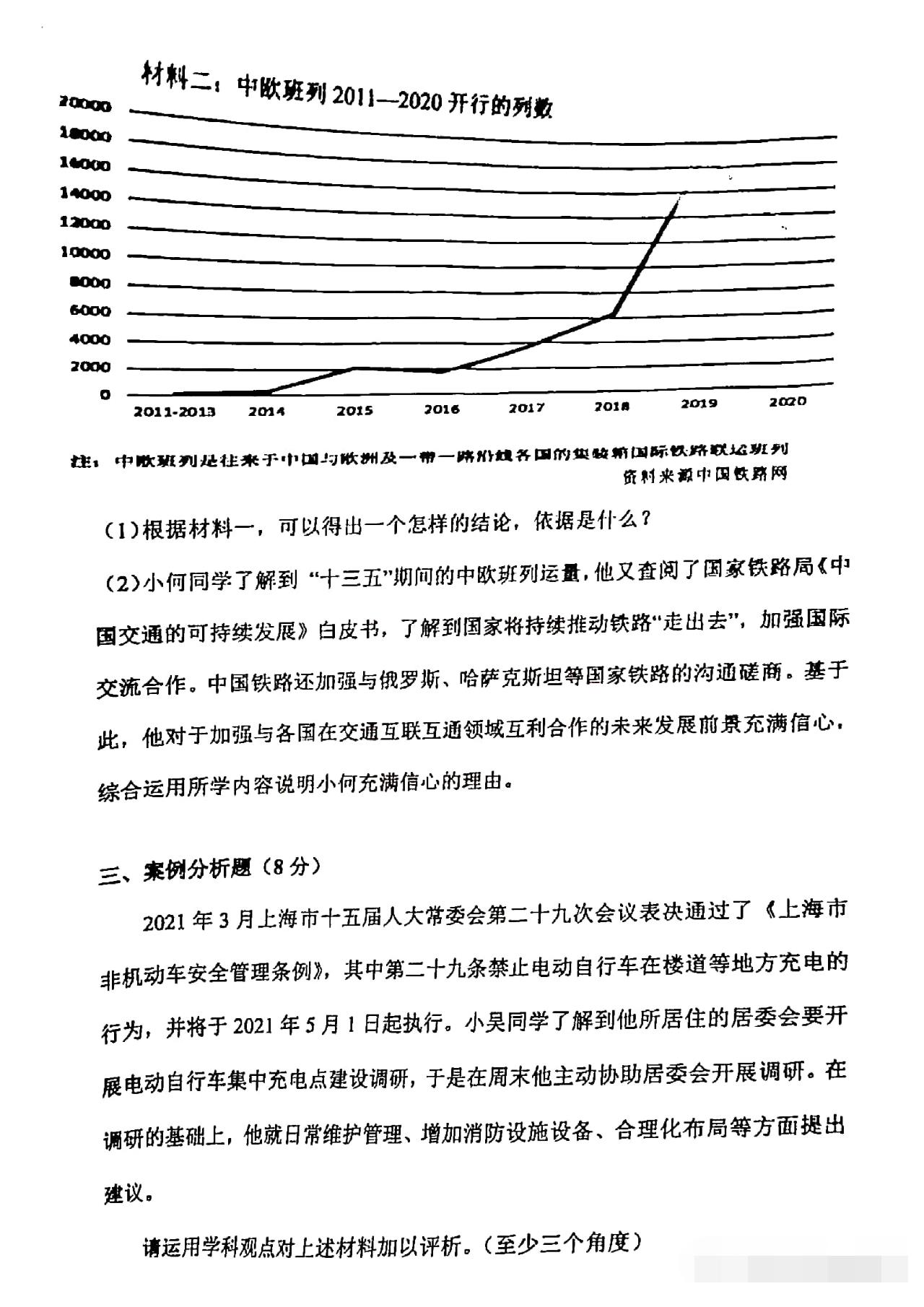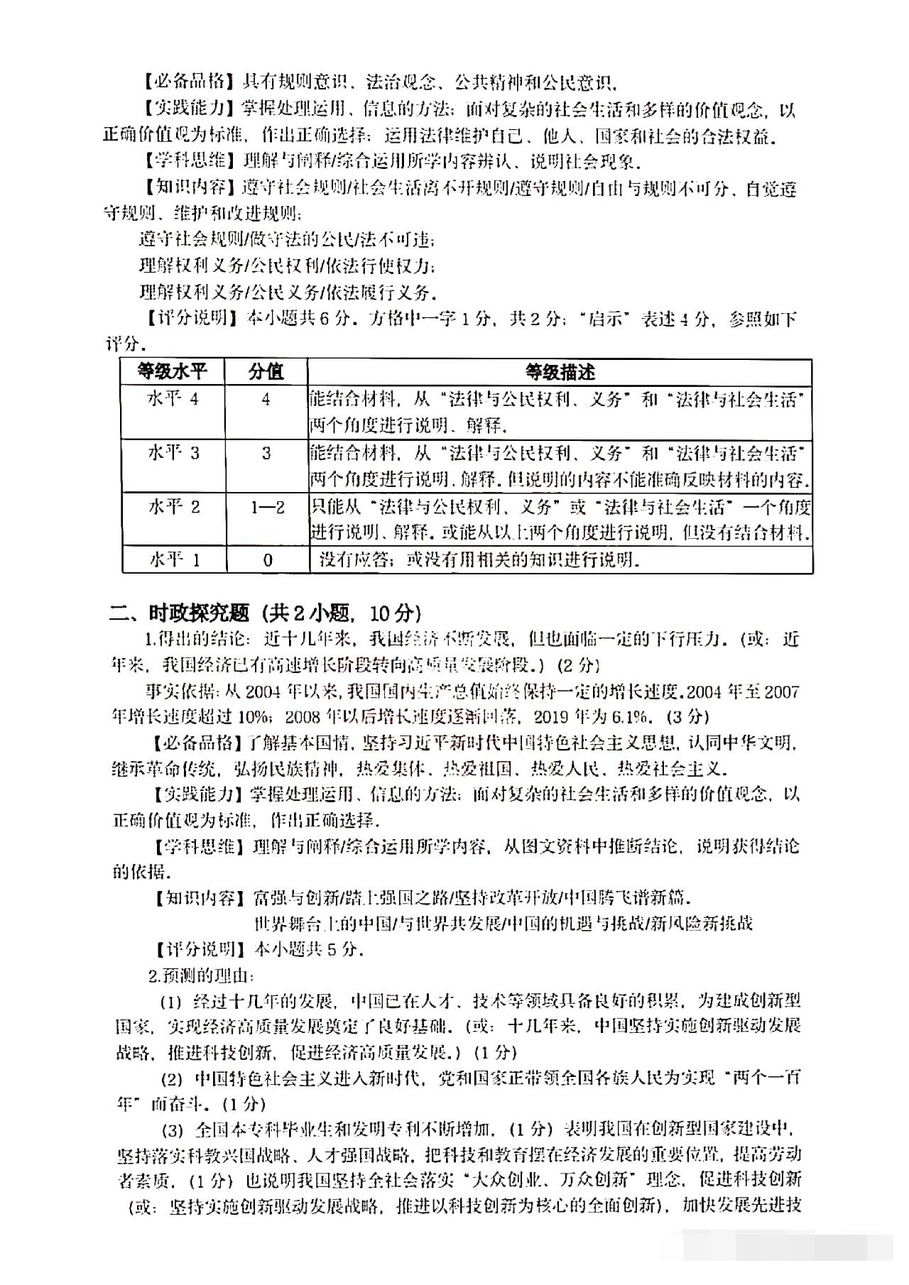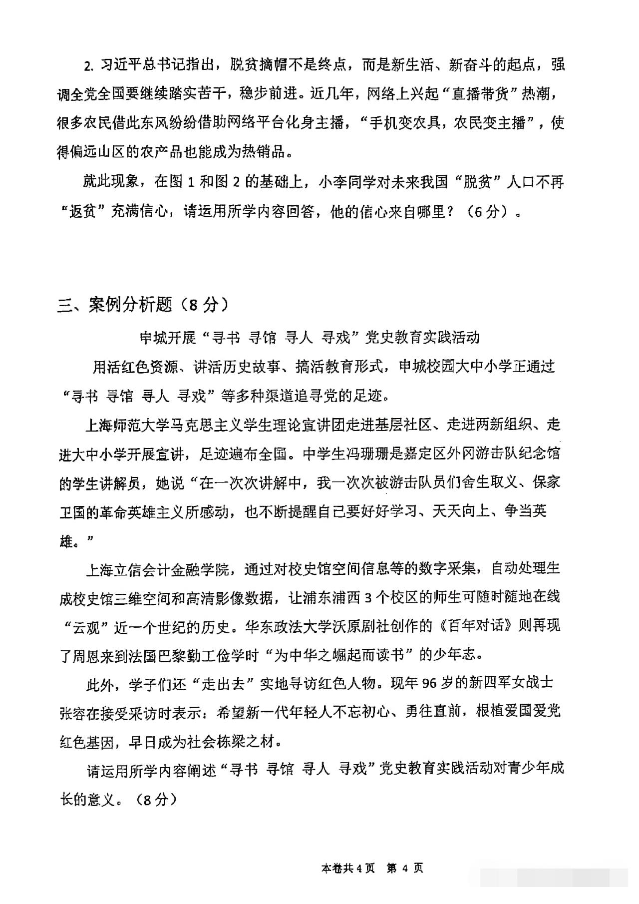 从卷面上看,全卷共有三道综合题,分别为综合理解题、时政探究题和案例分析题,满分30分。