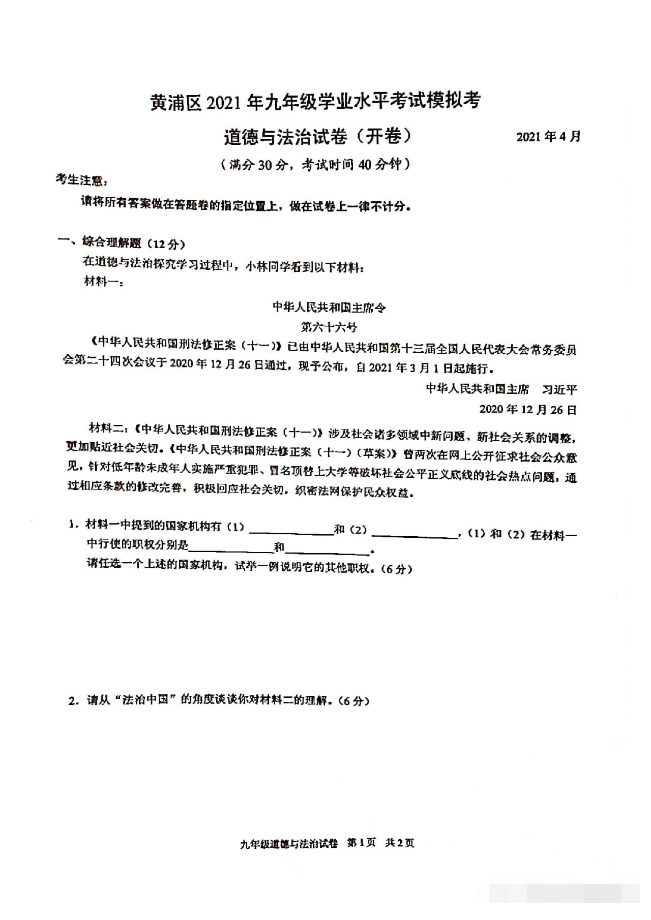 整理了<徐汇&静安&黄浦&浦东&奉贤&松江&金山>这几个区的二模道法试卷,小伙伴们可以试着练习一下各区的二模试卷~