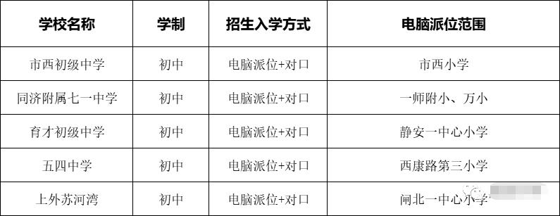 静安跟徐汇的情况相似,也是电脑派位+对口相结合的方式。其中,需要电脑派位的有5所初中。