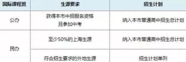 公办普通高中国际课程班招收具有本市中招报名资格且参加初中学业水平考试的学生(外籍学生除外);民办普通高中国际课程班既可招收上海生源,也可招收一部分非本市生源学生。