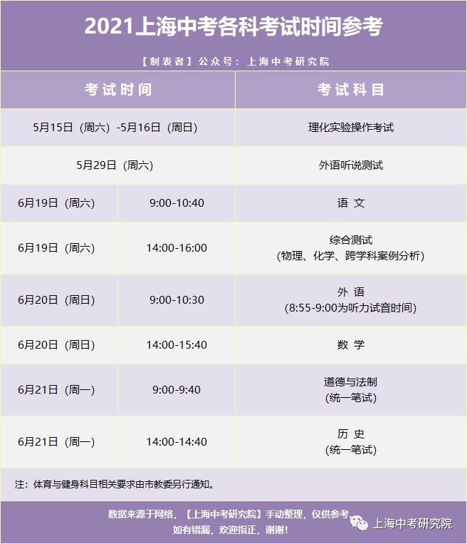 2021上海中考流程