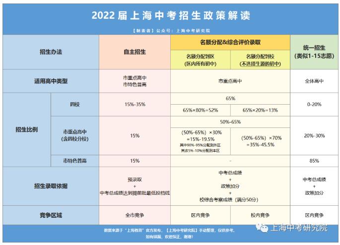 上海新中考招生录取政策
