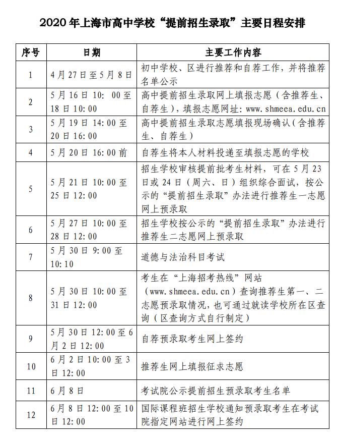 2 、5 月 16 日 10:00 至 18 日 10:00 高中提前招生录取网上填报志愿(含推荐生、自荐生),填报志愿网址:www.shmeea.edu.cn